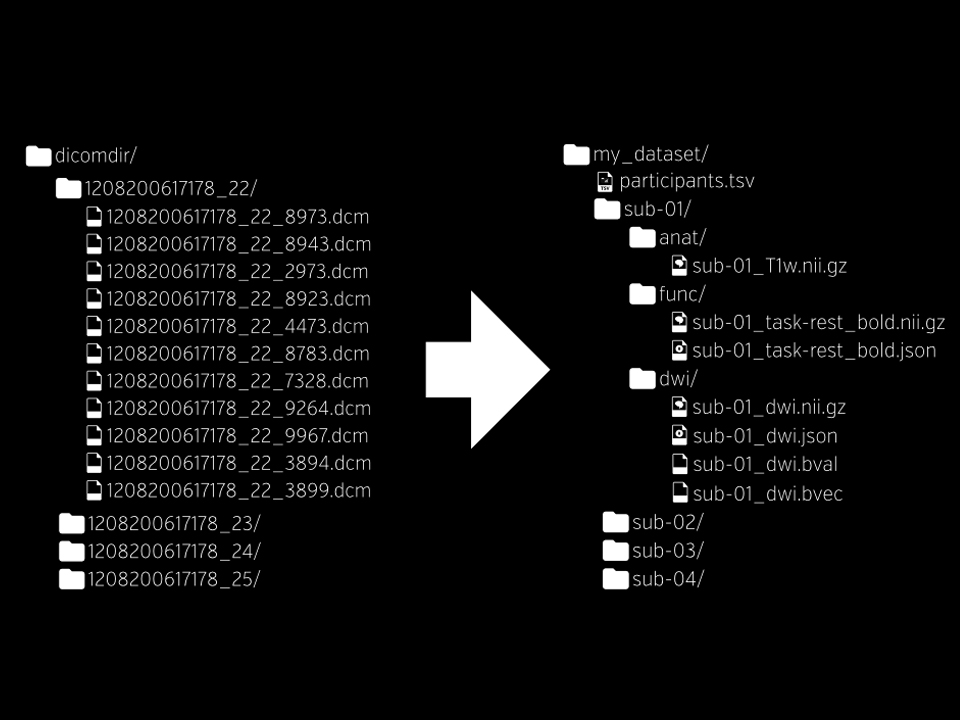 Neuroimaging experiments result in complicated data that can be arranged in many different ways. So far there is no consensus on how to organize and share data obtained in neuroimaging experiments. Lack of consensus (or a standard) leads to misunderstandings and time wasted on rearranging data or rewriting scripts expecting certain structure. BIDS (Brain Imaging Data Structure) was developed to give the community a simple and easy to adopt way of organizing neuroimaging and behavioral data.